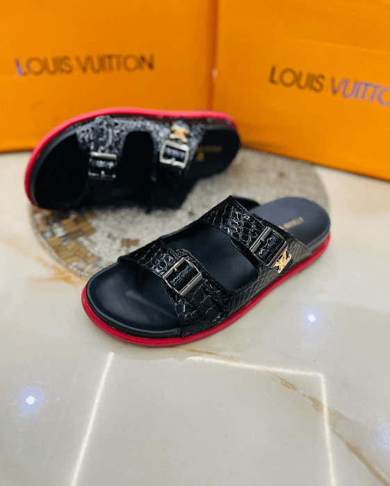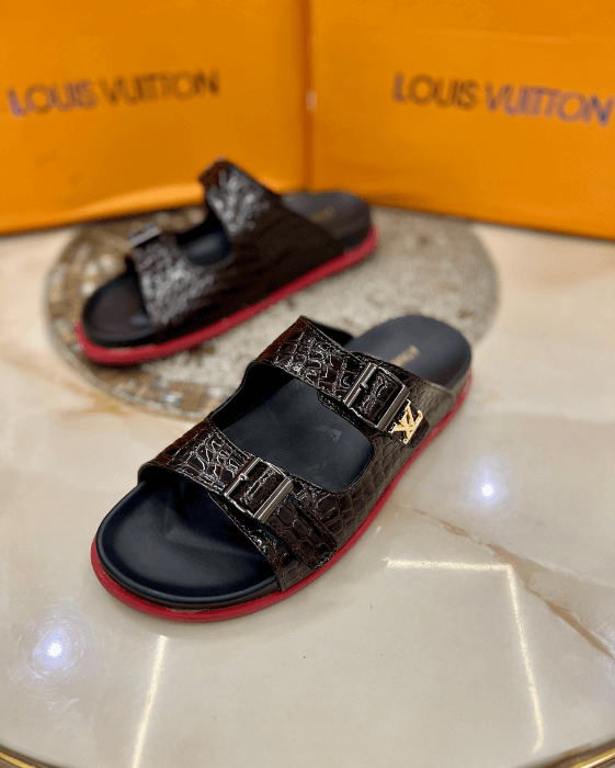 Discover the elegance of First Copy Replica LV Croco Slides. Perfect for any occasion, these stylish slides combine luxury and comfort for your wardrobe – SS – S899 – 1595935